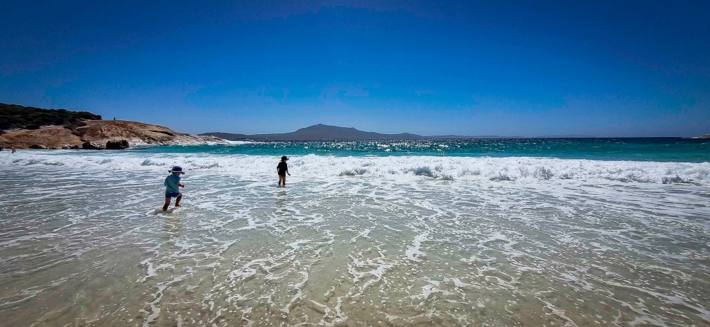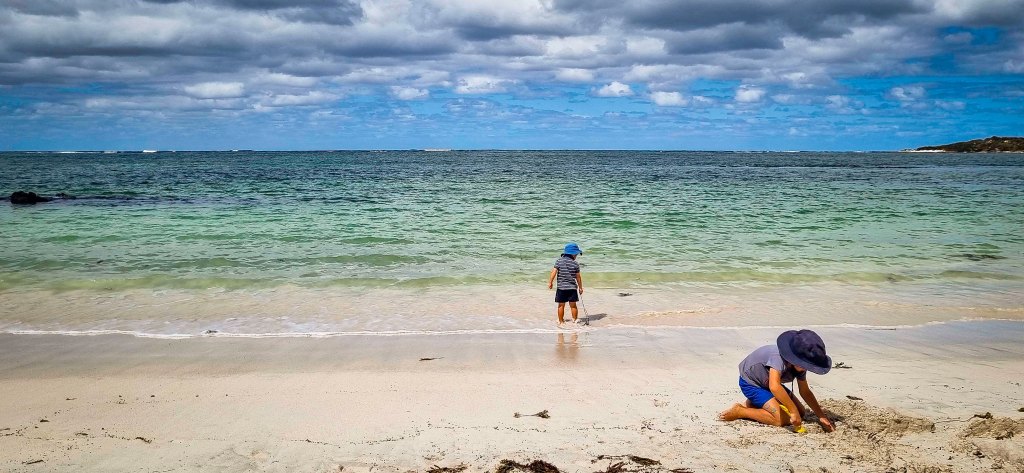 The southern end is very sheltered and had almost no swell at all which is great for our youngest although here he found some other kids to play with and didn’t go for a swim.