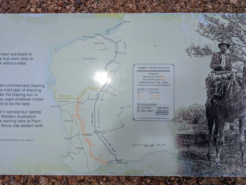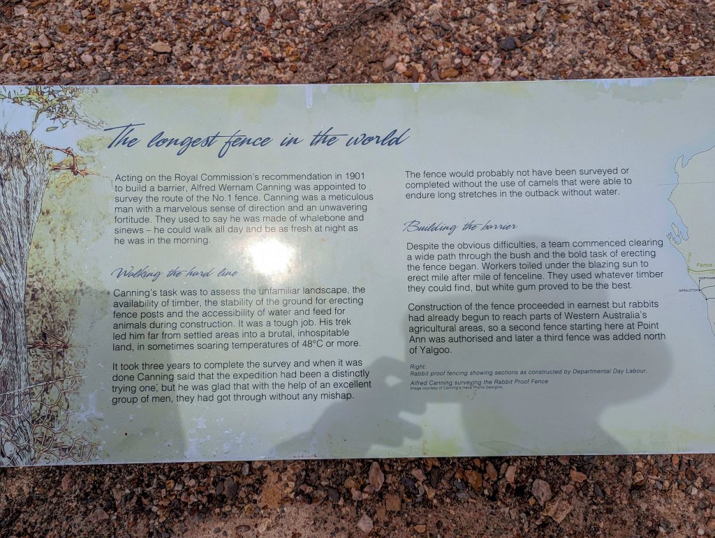 Monday February 27, we headed out on a day trip to see Point Ann. Point Ann is where the number 2 rabbit proof fence started. From the carpark it is an easy 1.5km circuit to the fence and the point and back again. There is not much left of the fence these days except a couple of posts and some very rusty mesh fencing on the ground but there is quite a lot of great information along the walk to stop and read. It is very interesting to see and great for the boys to learn about as well. Schooling on the road while having