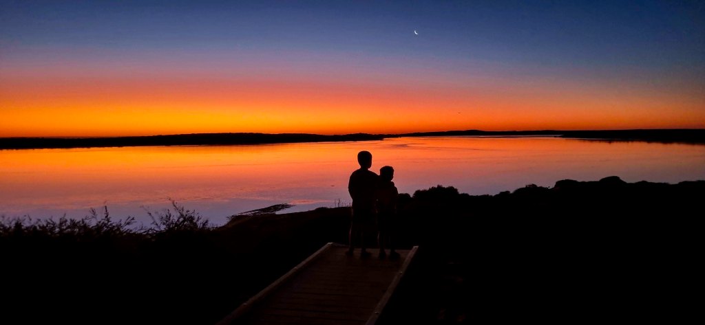 After setting up, we drove back into Denham for lunch and met some friends so the kids could play in the park. They even had some emu’s join them at the playground.