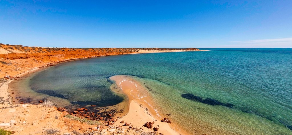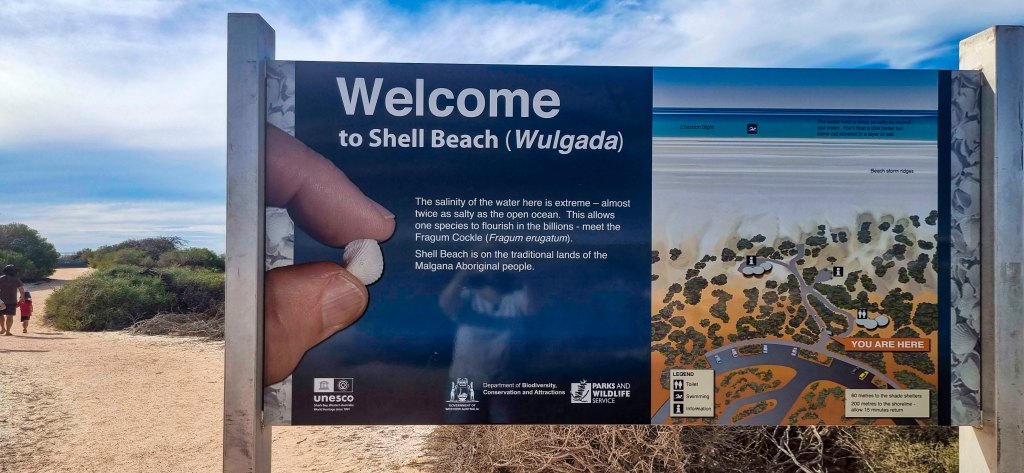 Wednesday we left Kalbarri and made our way to shark bay. We set up the van at a free camp near the bottom of the bay with a nice view over the ocean. Once setup, we unhitched the car and drove up to shell beach for a swim. The beach as the name suggests is completely covered by shells. Most are small white fragum cockle shells with a few spiral shells mixed in. The water was crystal clear and a bit warmer that we have been used to further south. After a swim we didn’t hang around at the beach as the flies were really bad, so we headed back to camp.