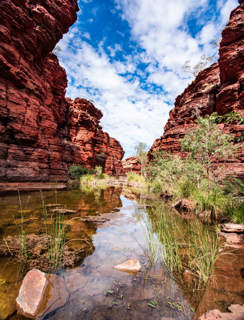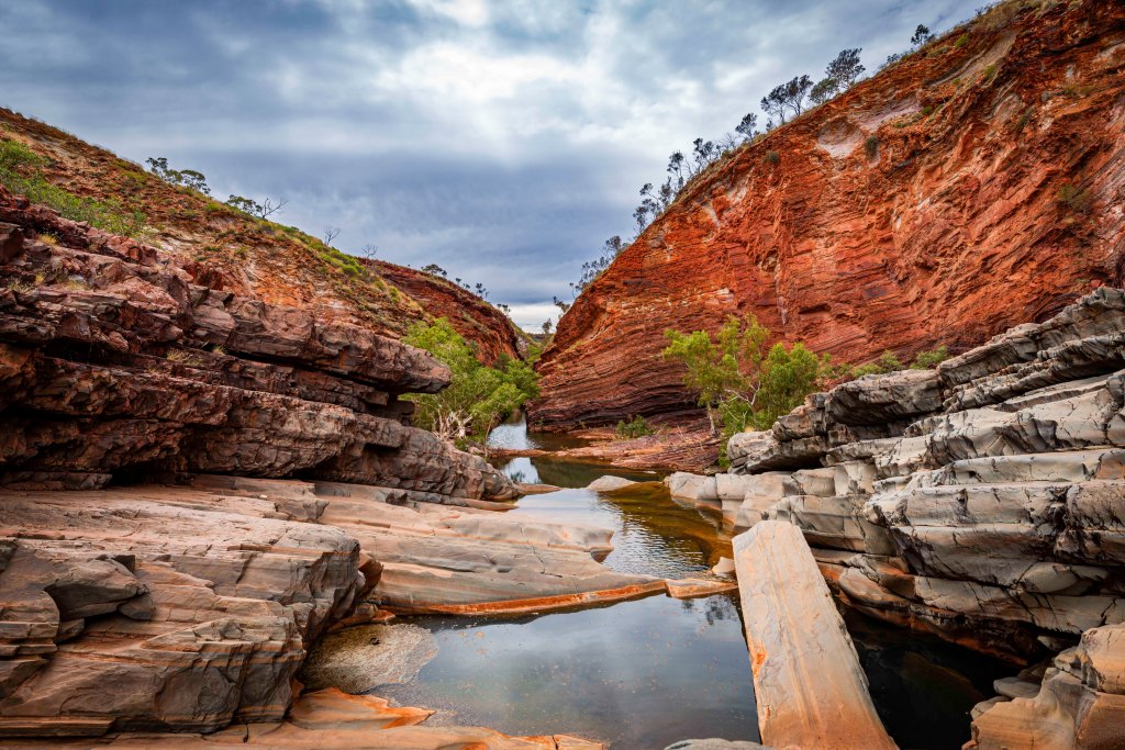 Wednesday we took off early and drove all the way to the western end of the park to Hamersley gorge. The track into the gorge is fairly short and at the bottom of the steps there is a large pool that heads downstream between the cliff walls however the main attraction here is spa pool which is upstream a few hundred metres. From the base of the steps up to spa pool is not so much a walk but more a scramble over the smooth rocks jutting up at about a 45deg angle. We skirted the water, slowly making our way over the trickier sections until we reached the opening into spa pool itself.