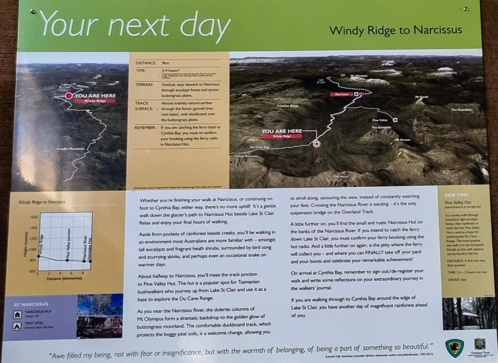 After settling in, we all headed over to the Information Centre to check in for the track and do the compulsory briefing at 3pm. We chose to get to Cradle Mountain the day before and do the briefing that afternoon, so we could get started on the track 1st thing in the morning. Otherwise, we would’ve been starting much later. This gave us a lot more time on the 1st day, which also included the steepest uphill sections of the hike, so we could take our time.