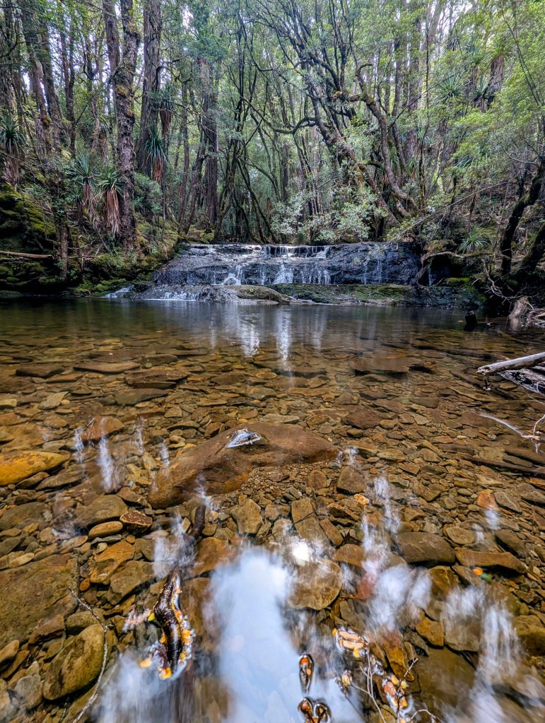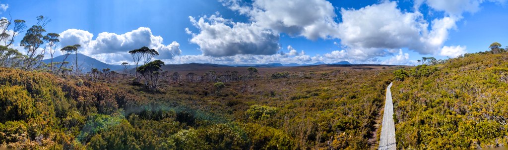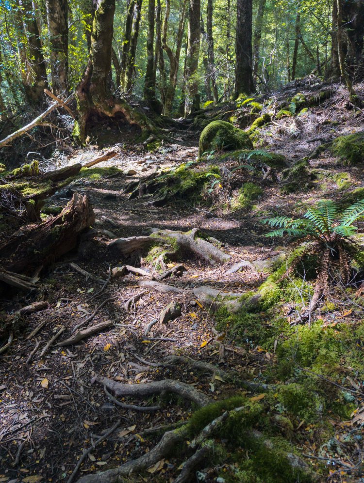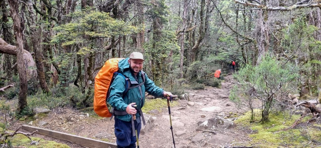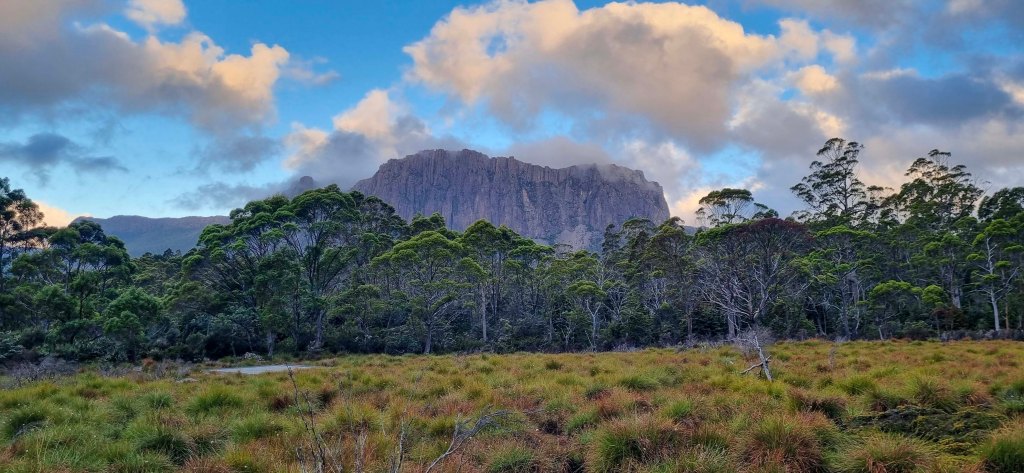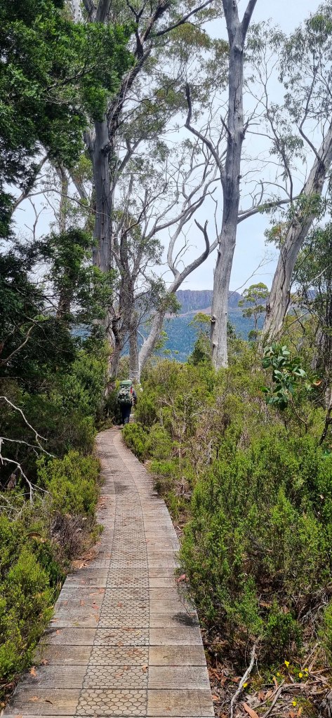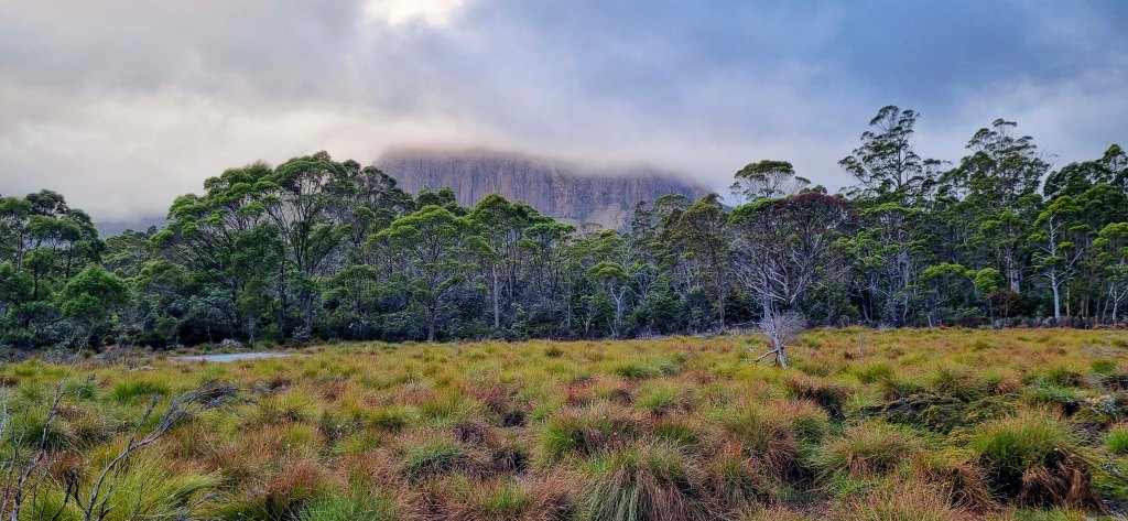 The Overland track starts off easy with a nice walk through the grasslands on a boardwalk before starting a steady climb through the trees, past a small creek and crater falls up to Crater lake. We topped up with water here using our filter system and after taking a few photos, continued uphill towards Marion’s lookout. That 1st day, those 1st few hours, were the hardest I thought. You’re finding your pace, your body’s adjusting to the heavy weight of the pack and finding your walking rhythm.