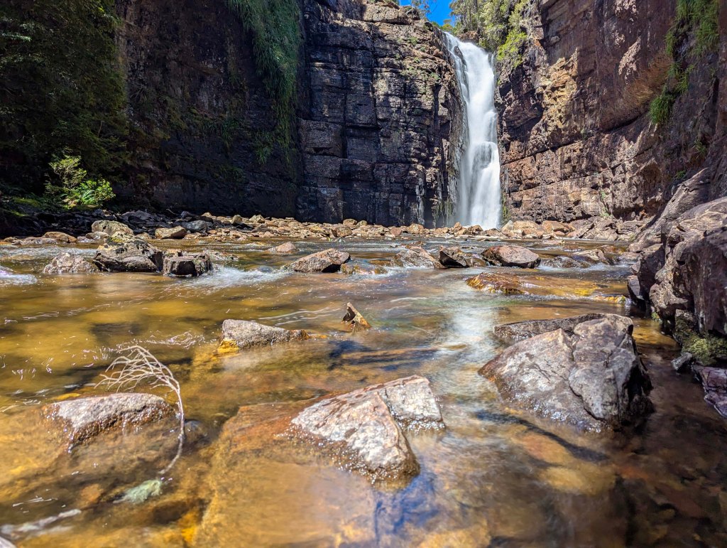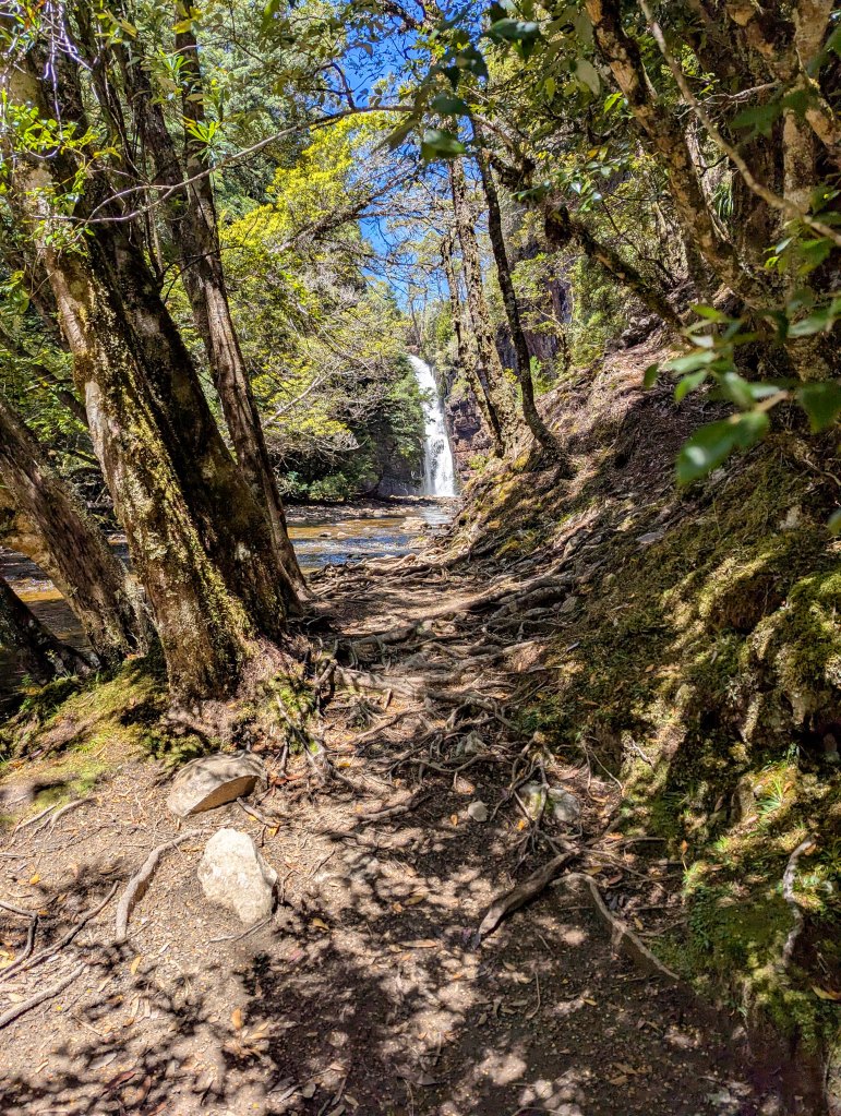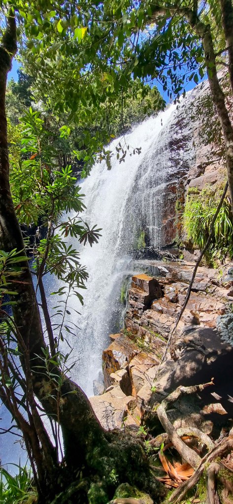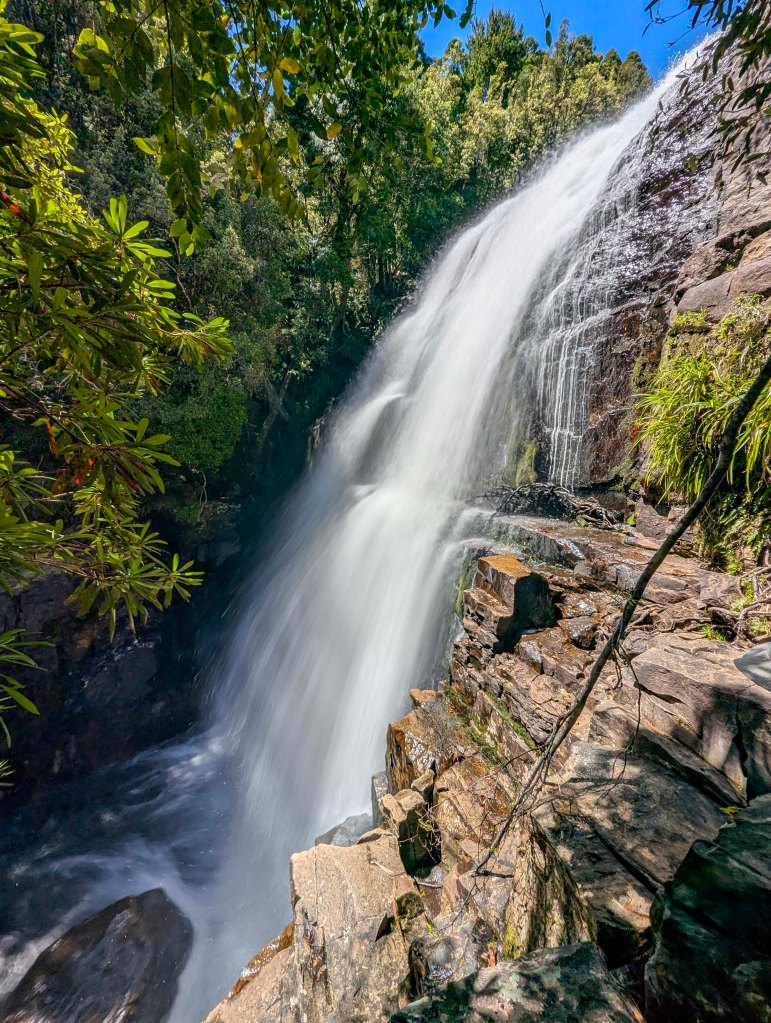 D’alton falls was 1st. The track stops opposite the falls giving us a magnificent view directly across from the waterfalls as the water came down from above.