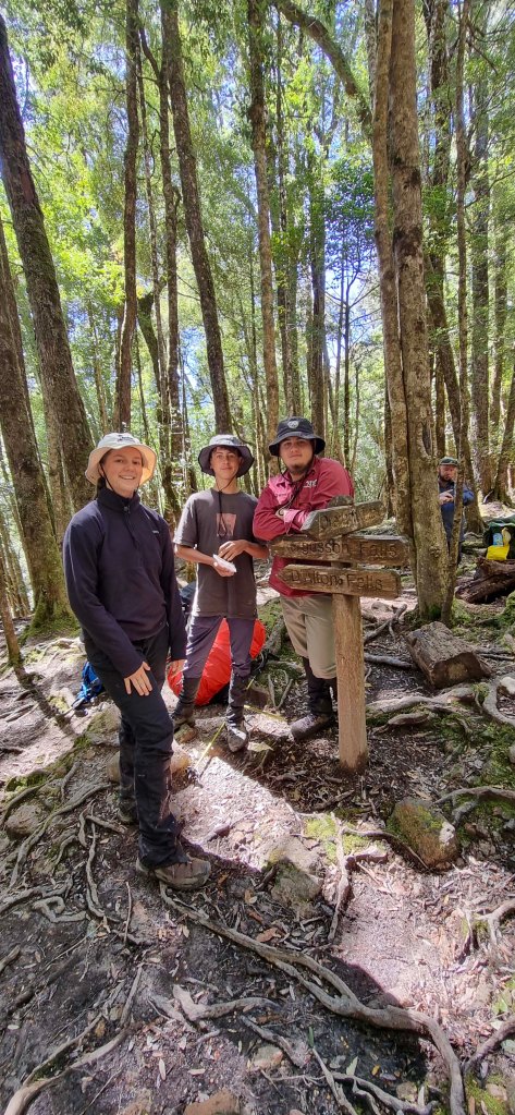 There were quite a few other groups, including guided groups, there taking a break. So we opted to keep on walking once the helicopter had gone, to avoid getting stuck in amongst several large groups of people. Around 4.5km into the days walk we arrived at the intersection to the 1st of the side trips, to both D’alton falls and Fergusson falls. We stopped at the intersection and waited for the rest of our group to arrive which was only a few minutes, and then left our packs and headed down to the falls.