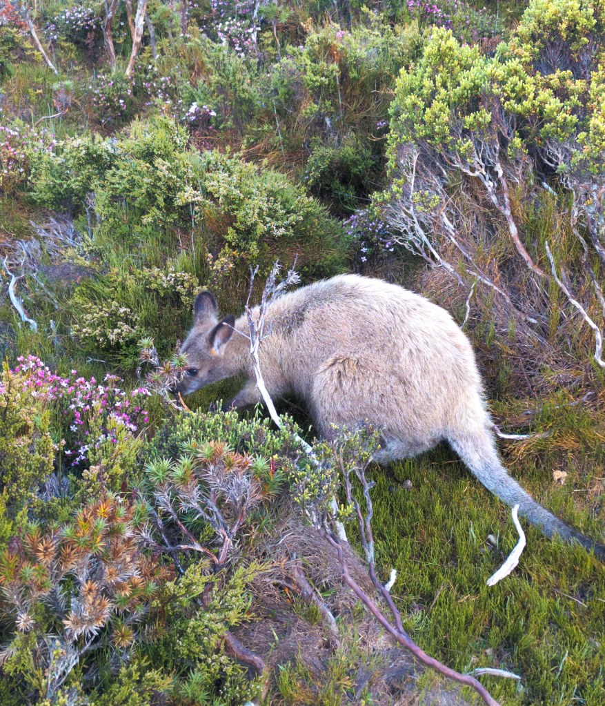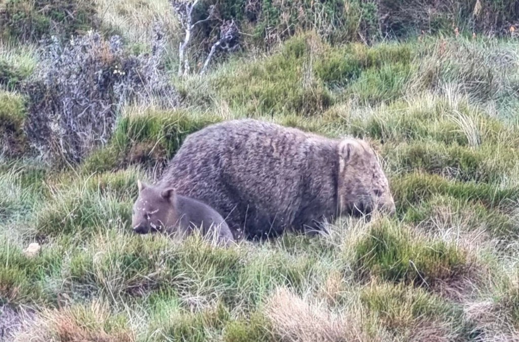 We were all a bit lucky late in the day with the wildlife, we saw a Wombat mum and baby and also a very light colored wallaby just near the hut which is not a common occurrence.